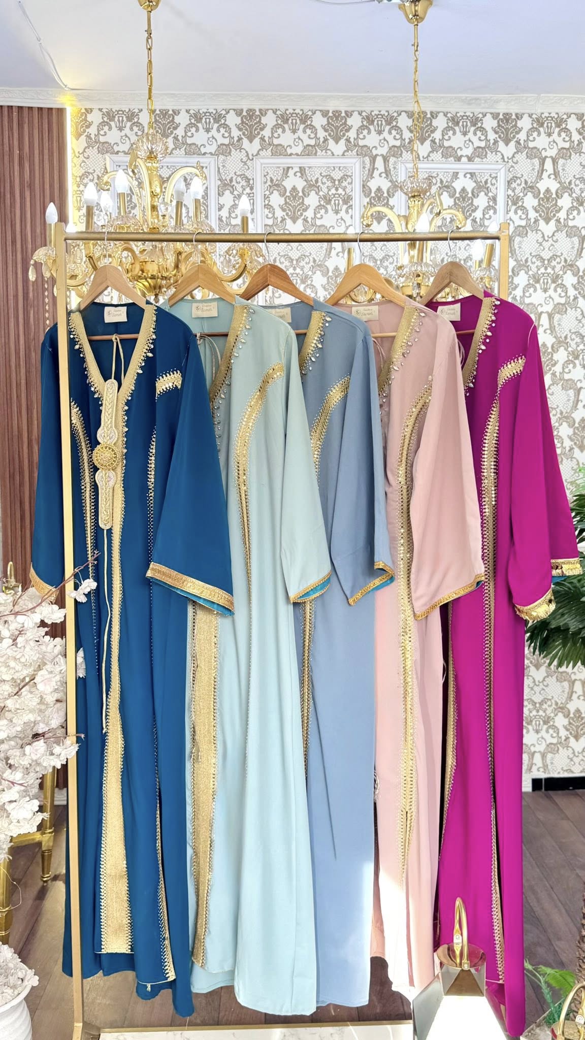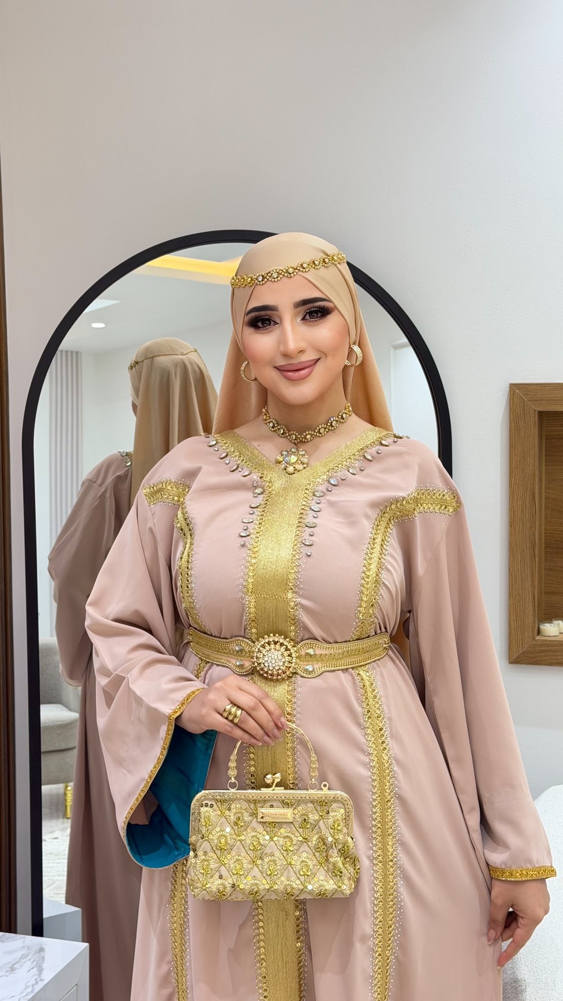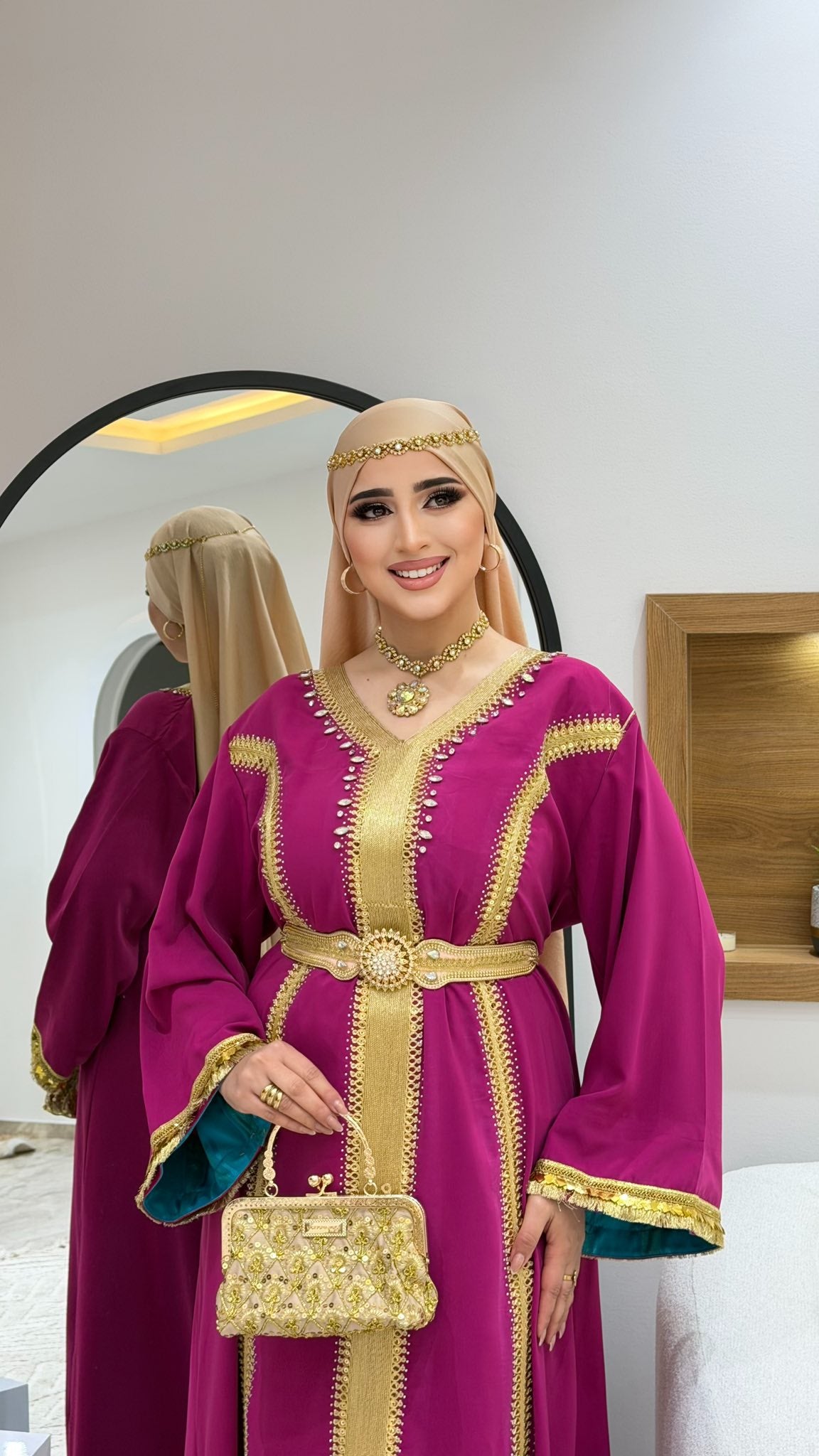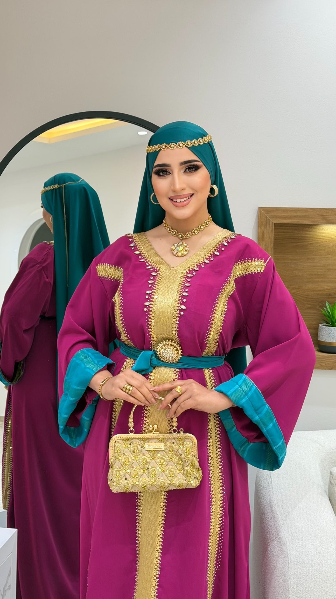 avec deux ceinture dorée et turquoise